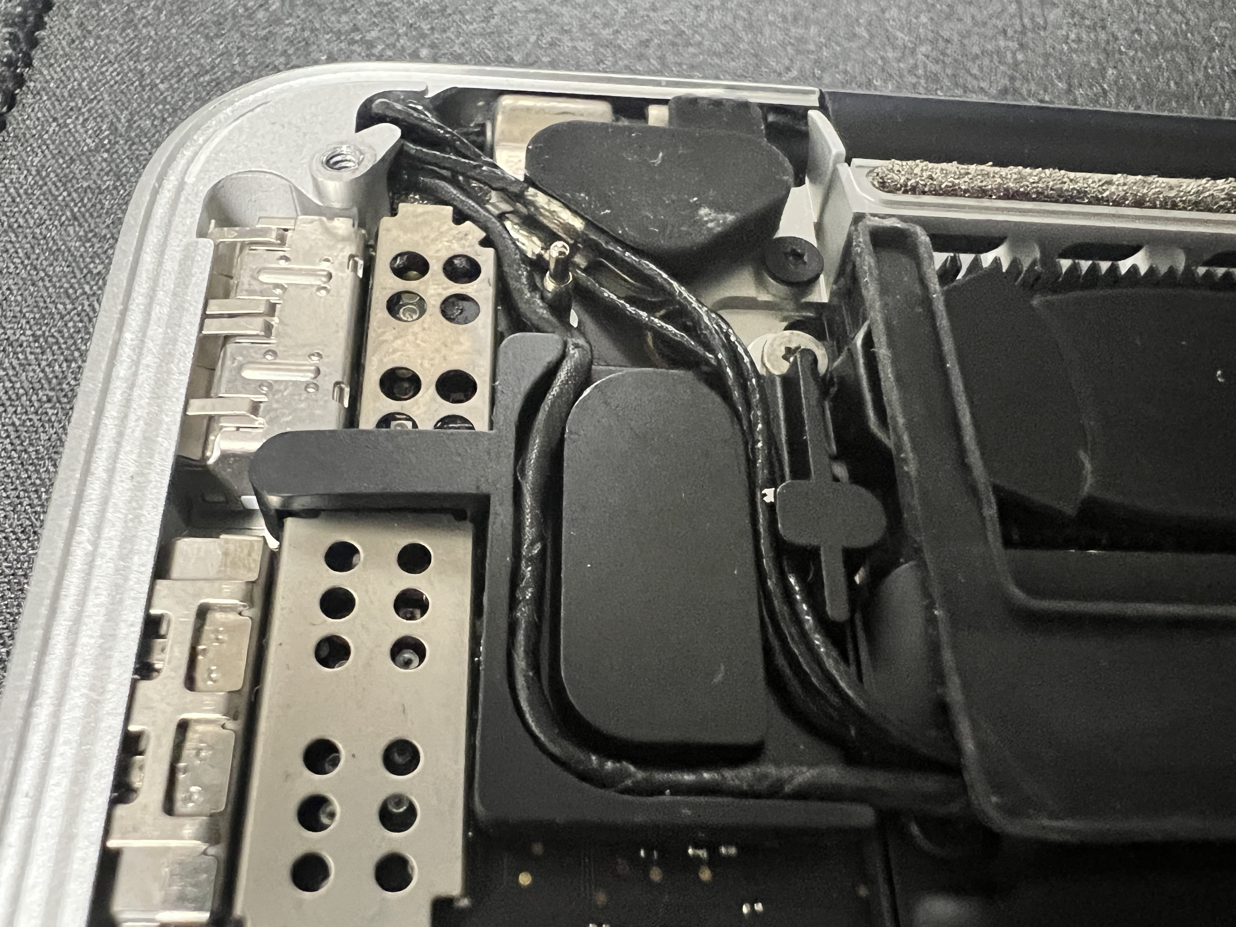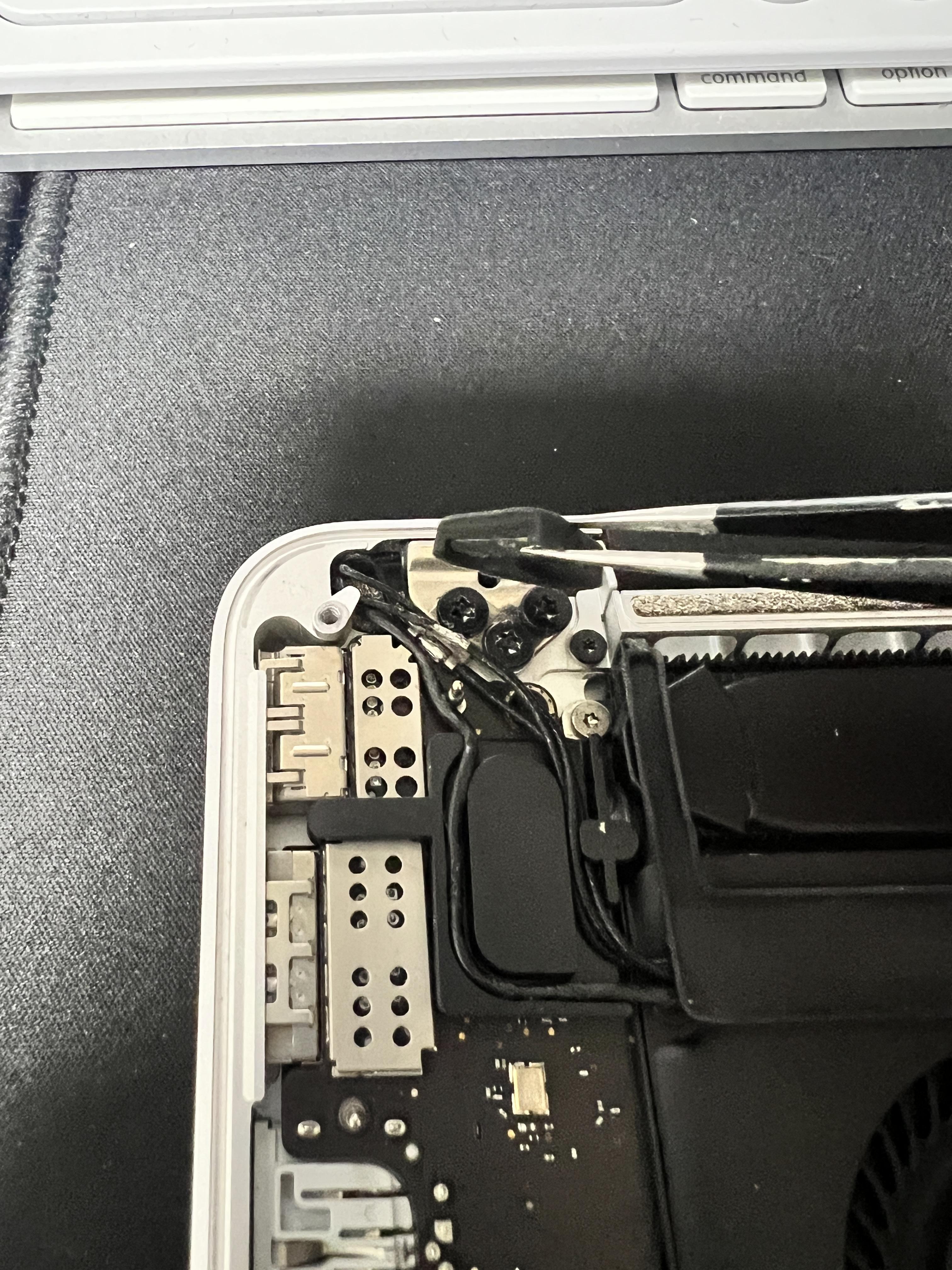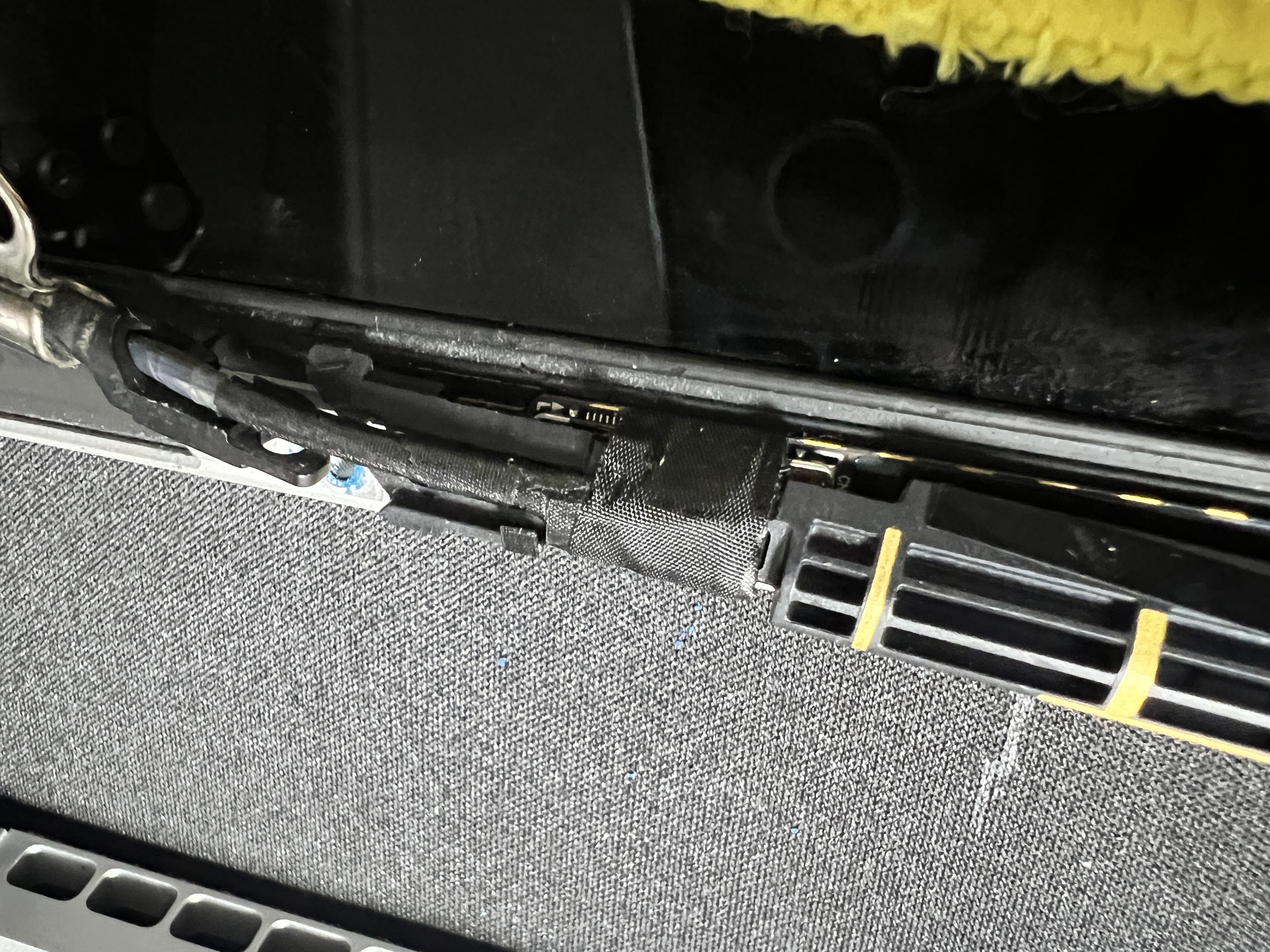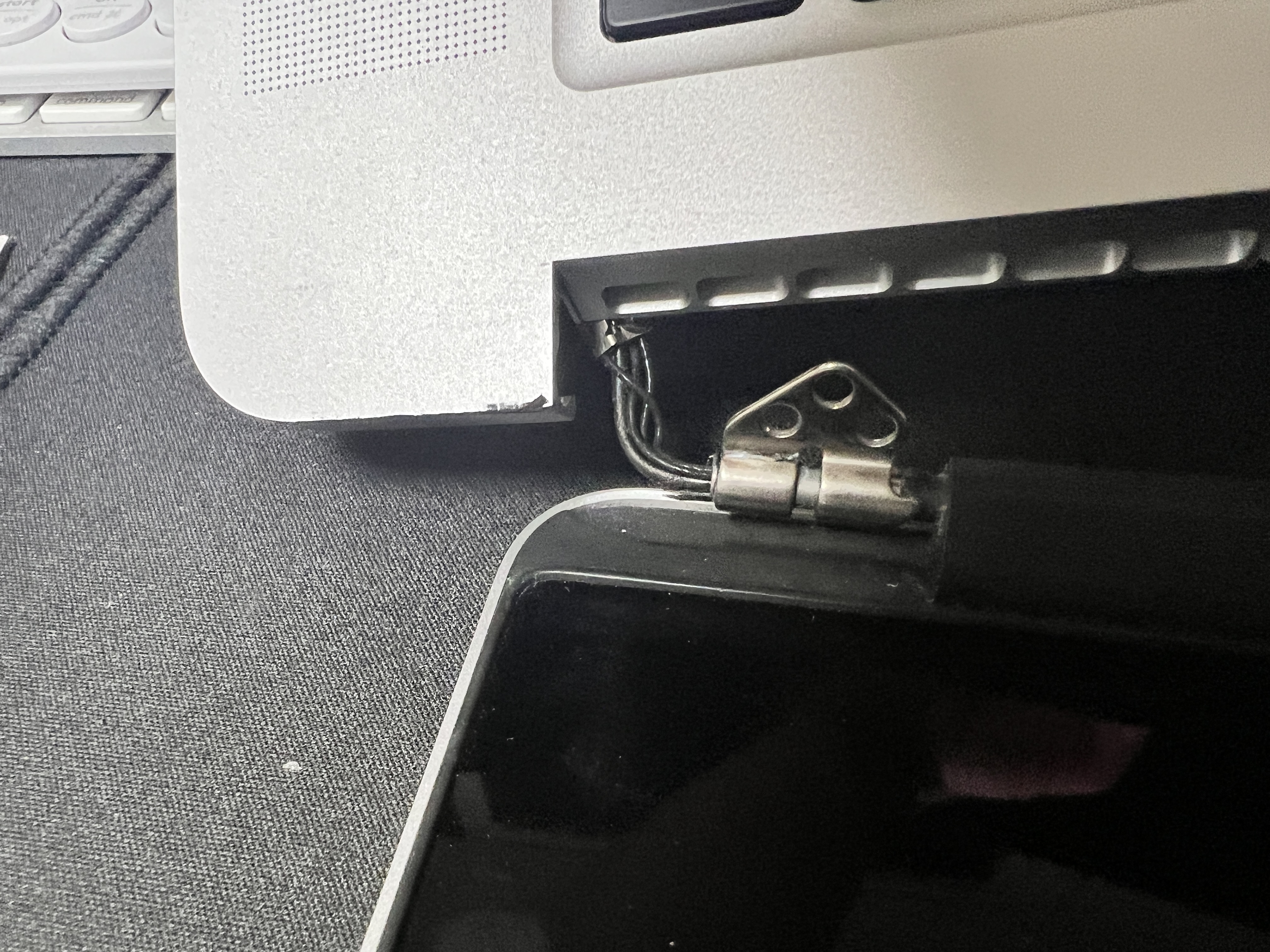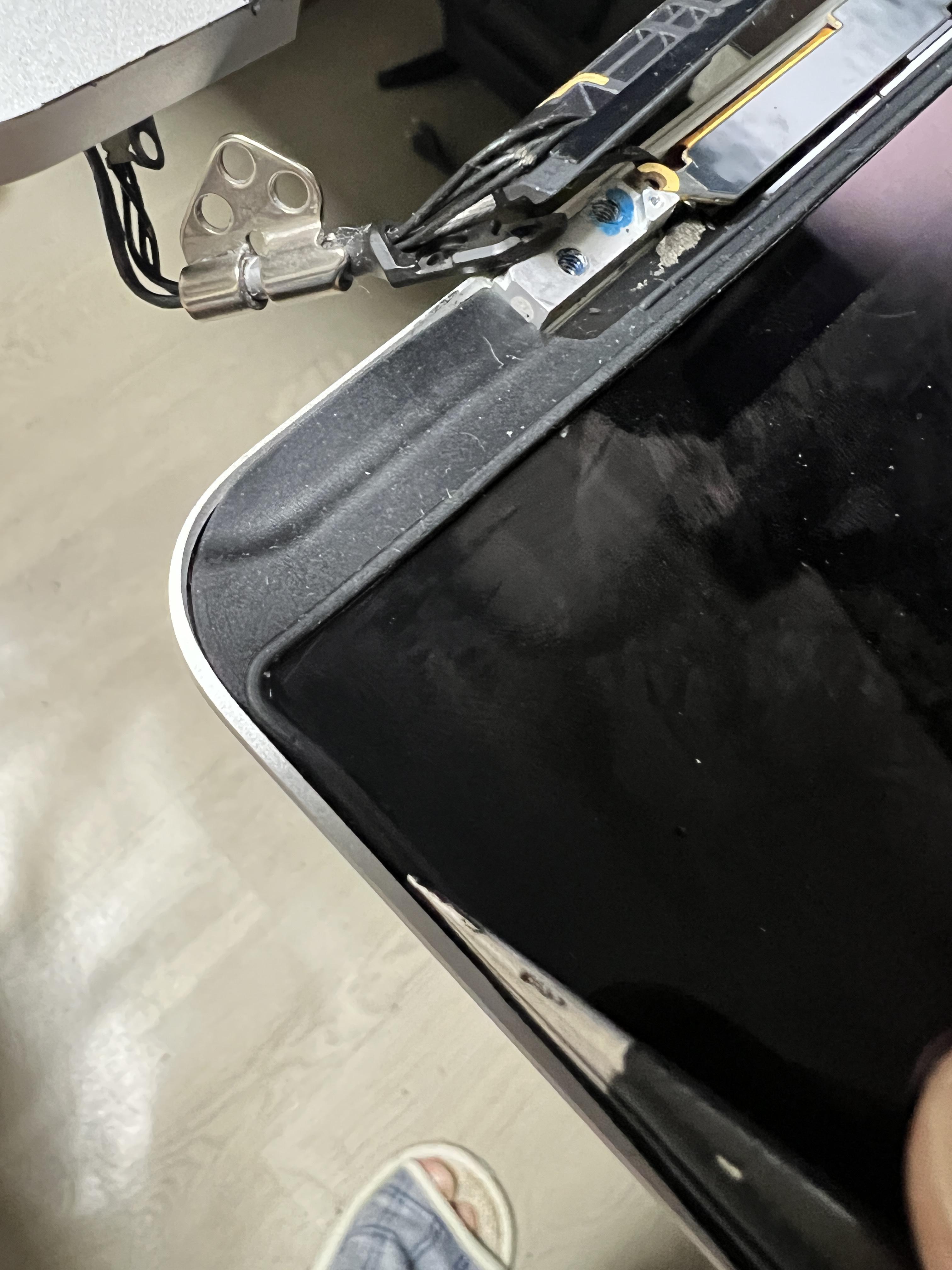 단 힌지를 통해 와이파이 안테나 선은 그대로 연결되어 있으니 조심해야 함