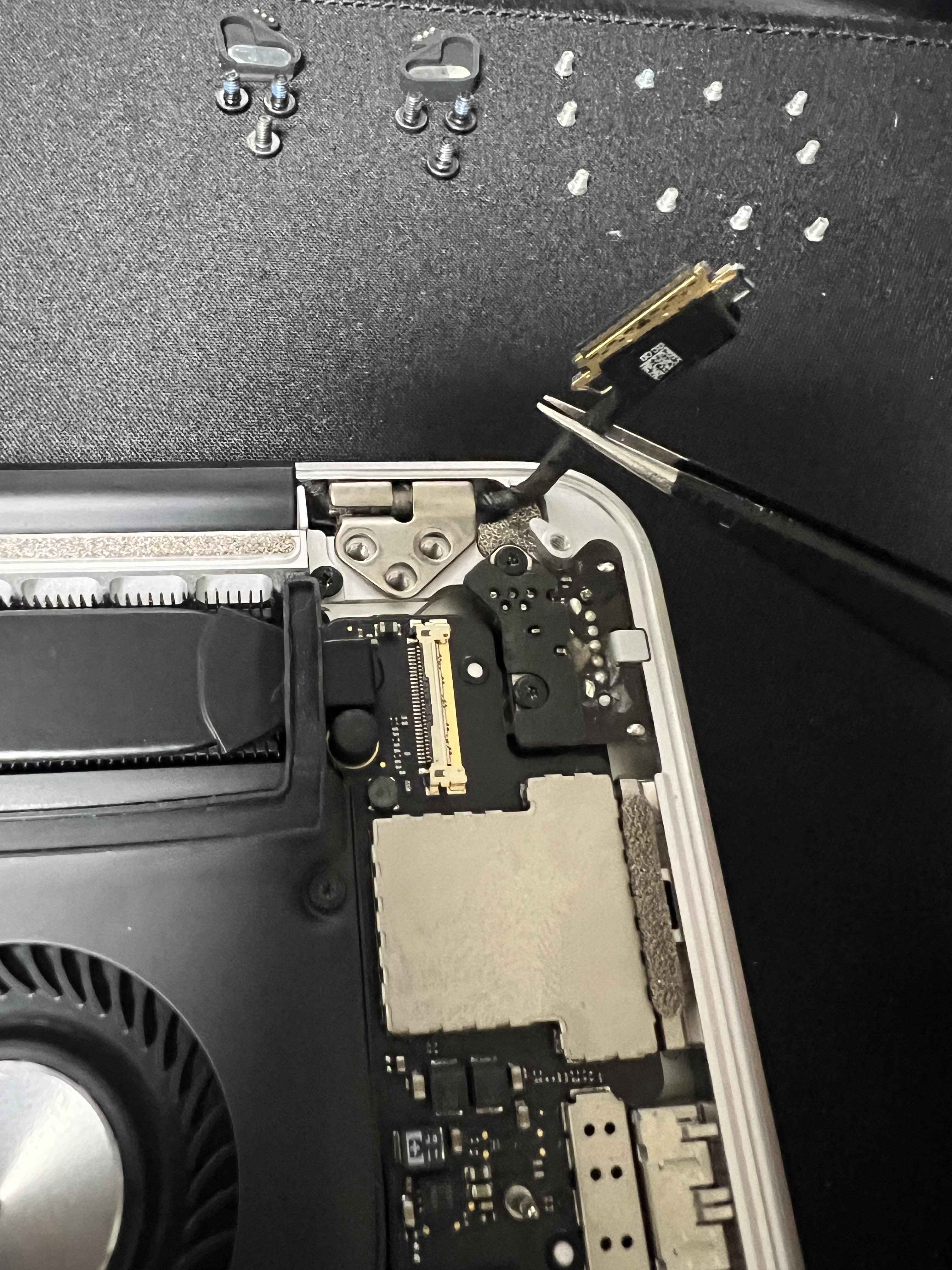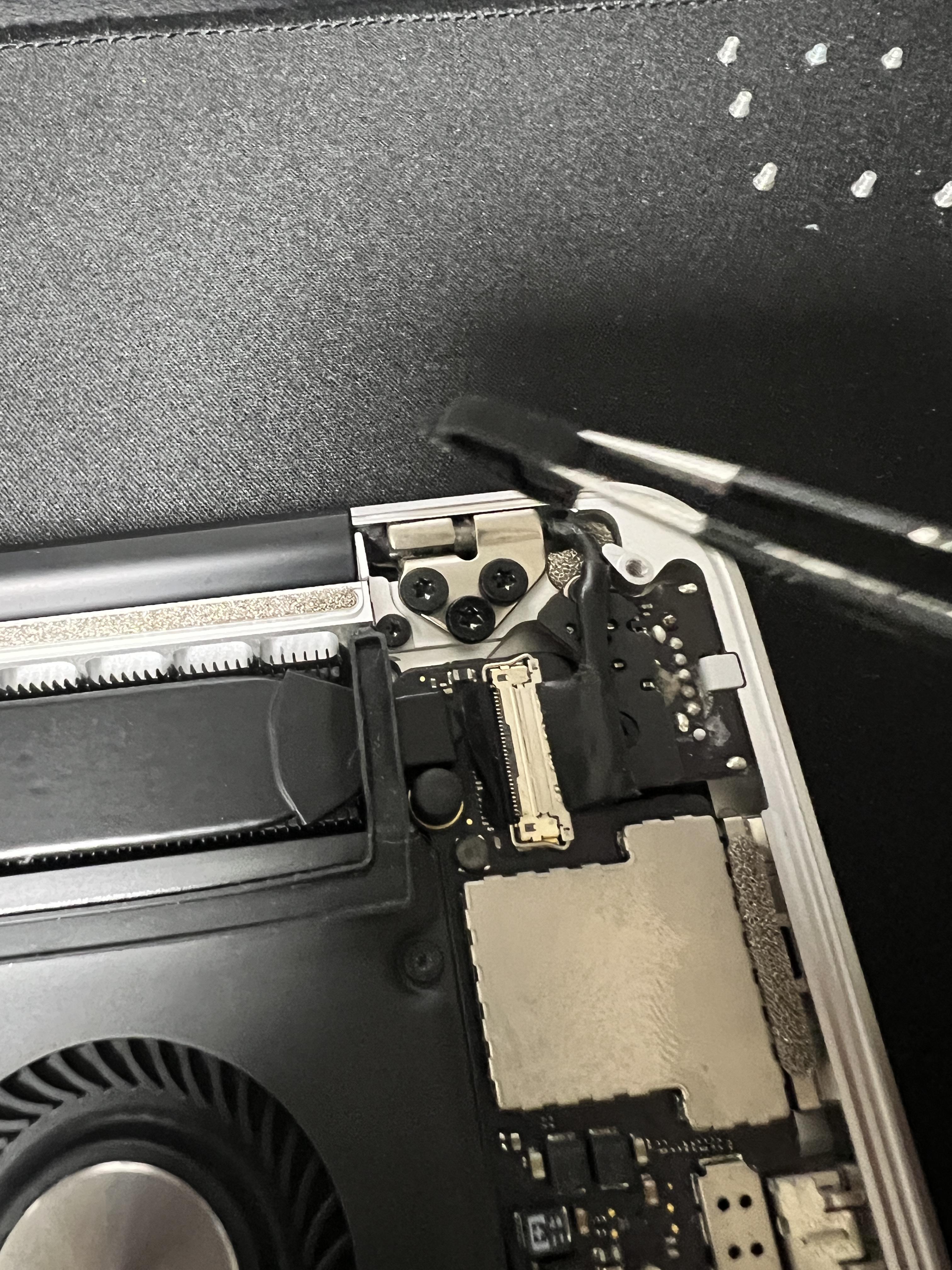 우측 힌지 아랫쪽에는 메인보드와 LCD를 연결해 주는 단자가 있다