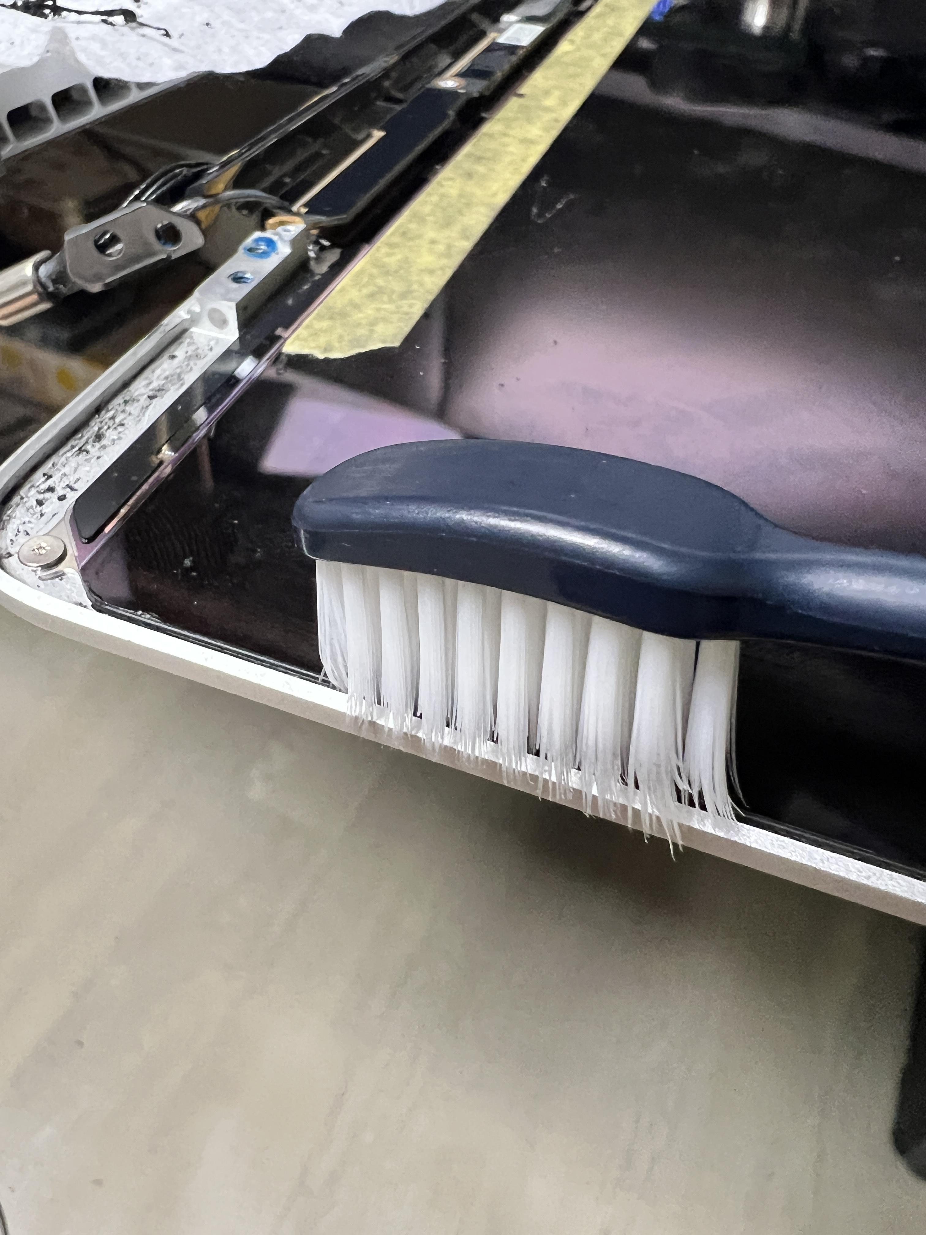 칫솔로 다시한번 틈새에 남은 고무 찌꺼기를 깔끔하게 청소~