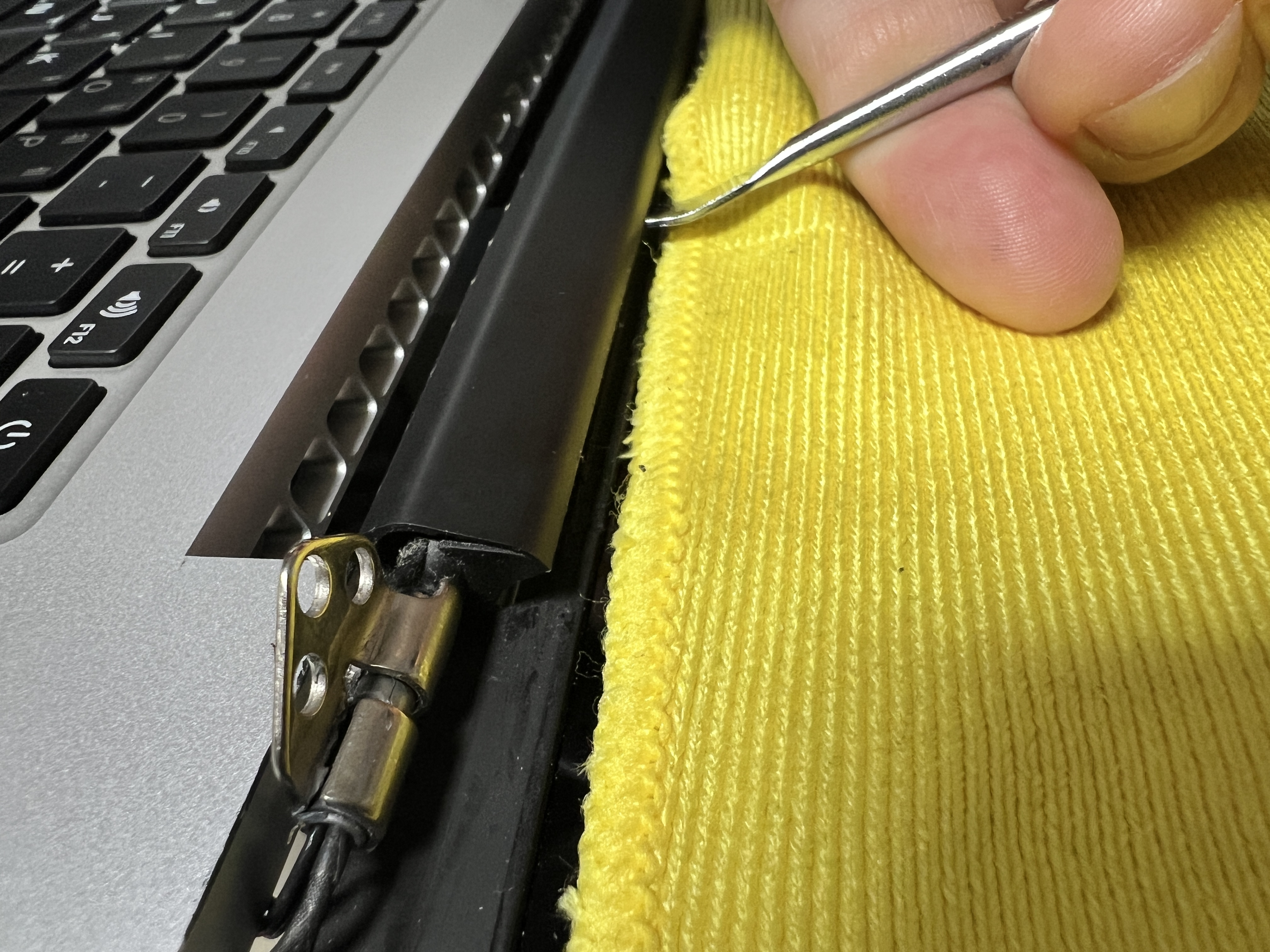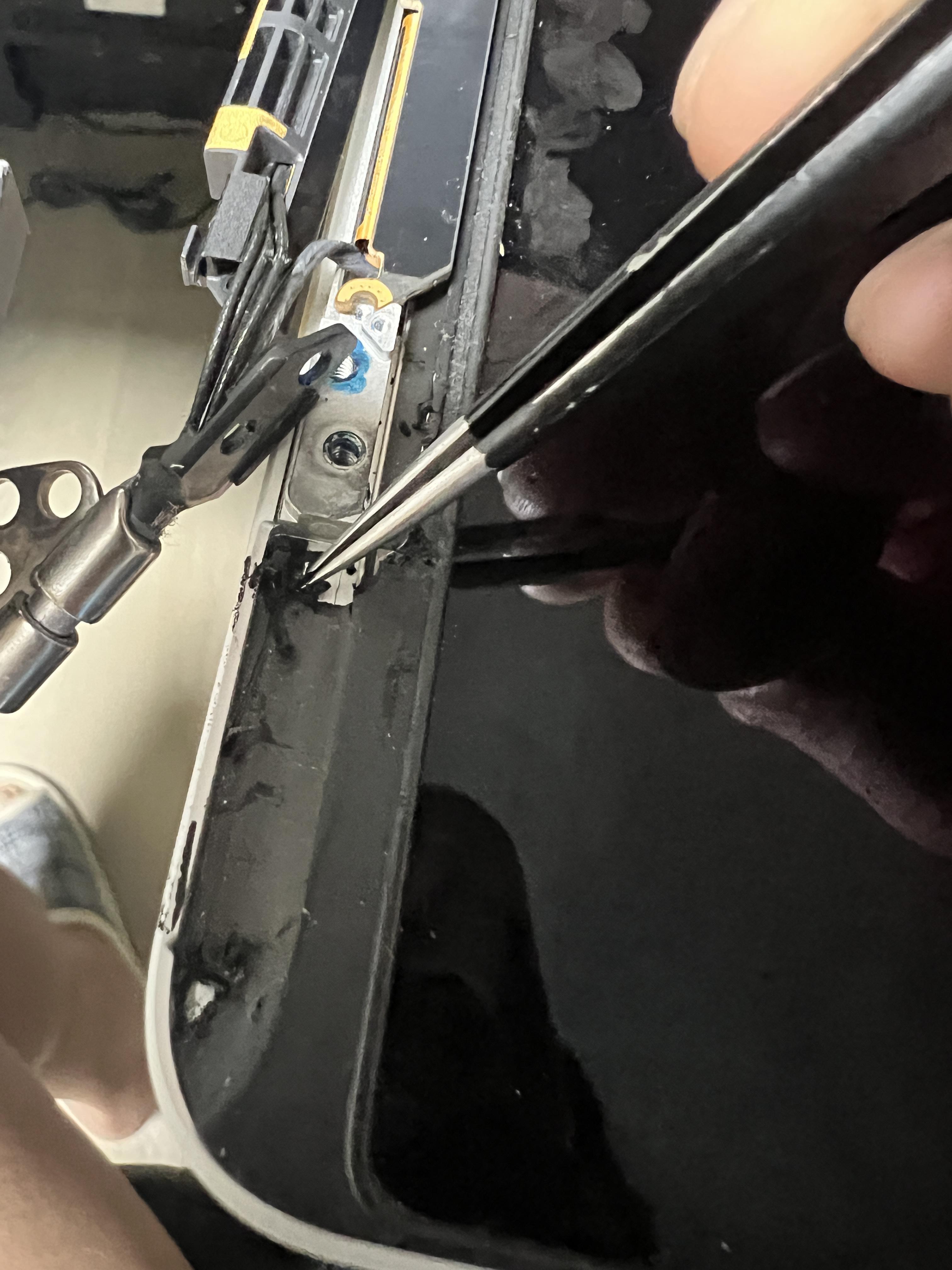 핀셋으로 이렇게 힌지에서 들어내 주고~
