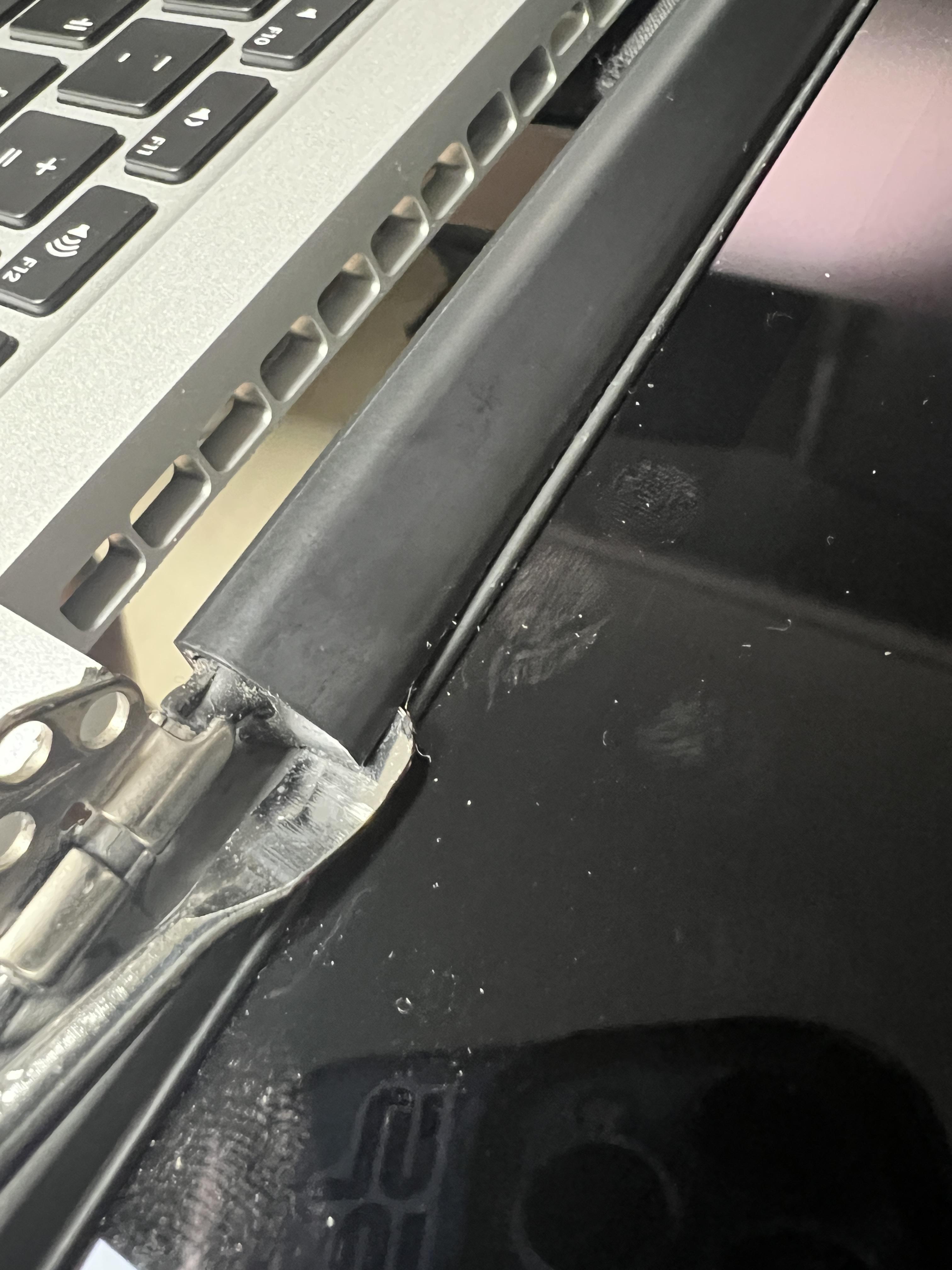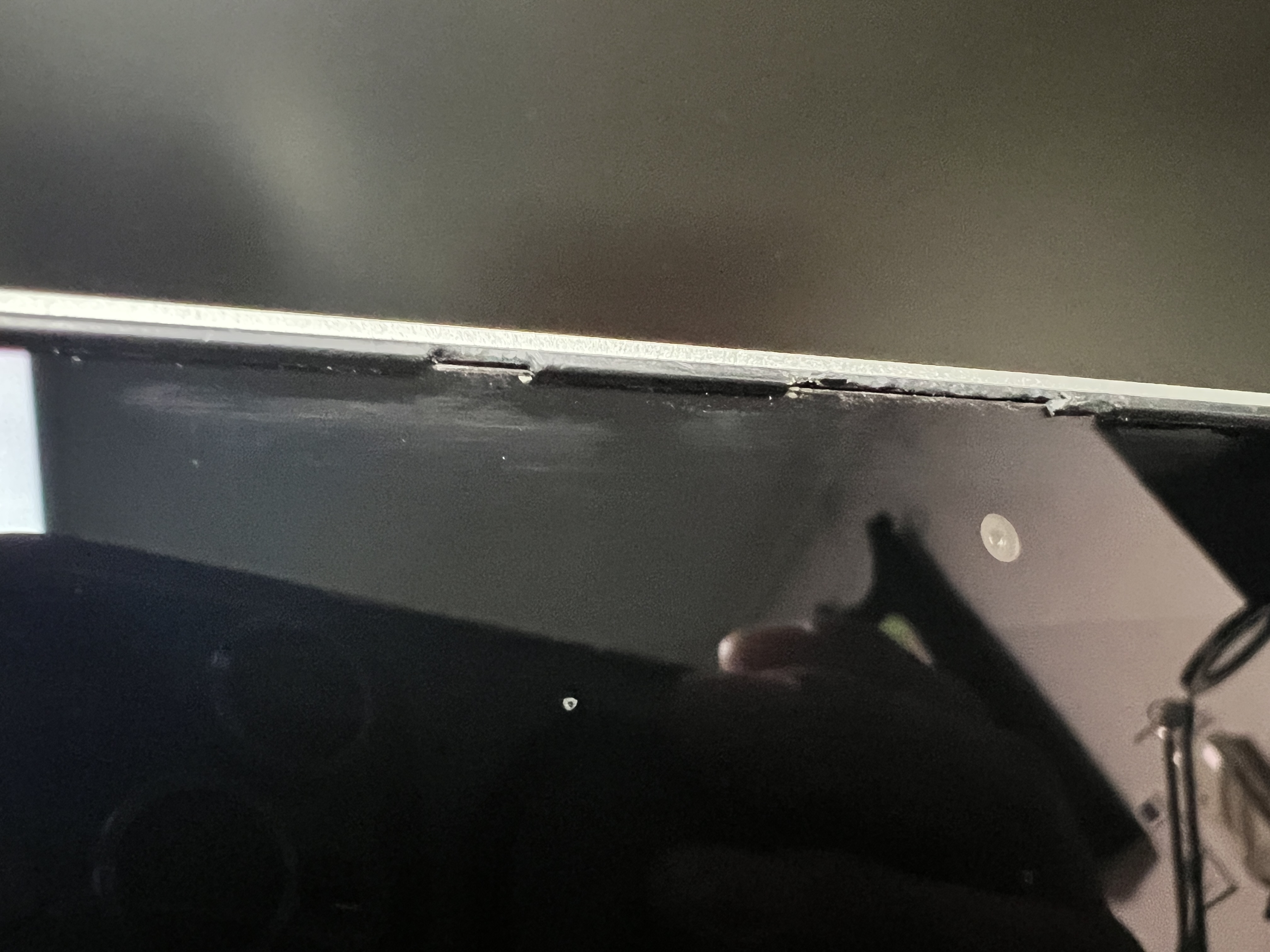 상판 상단 부분의 액정 테두리 고무가 부분부분 떨어져 나갔음 ㅠㅜ