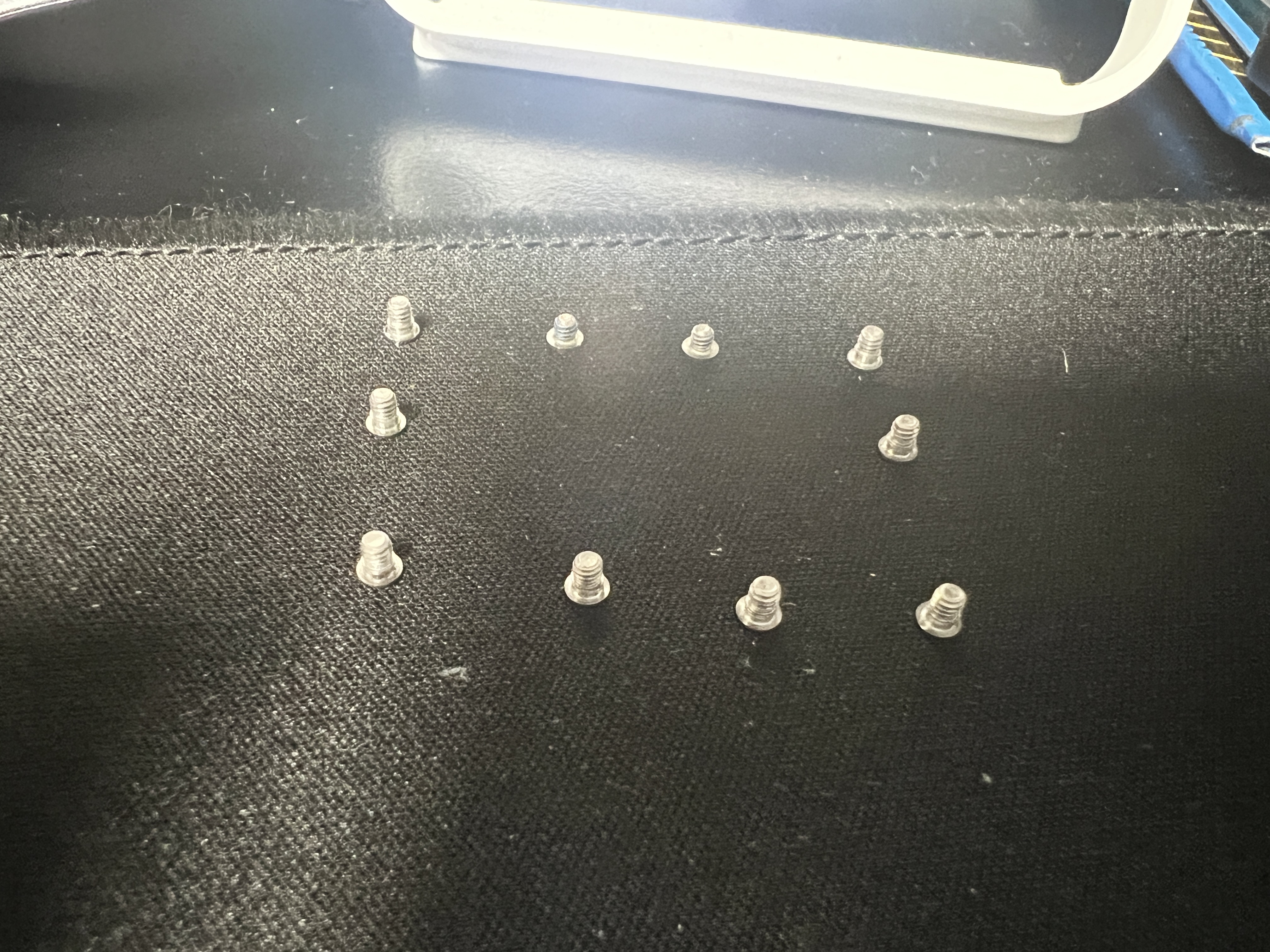 맥북 분해 초심자의 경우 풀어준 나사들을 사진처럼 위치별로 이렇게 잘 정렬해 두어야