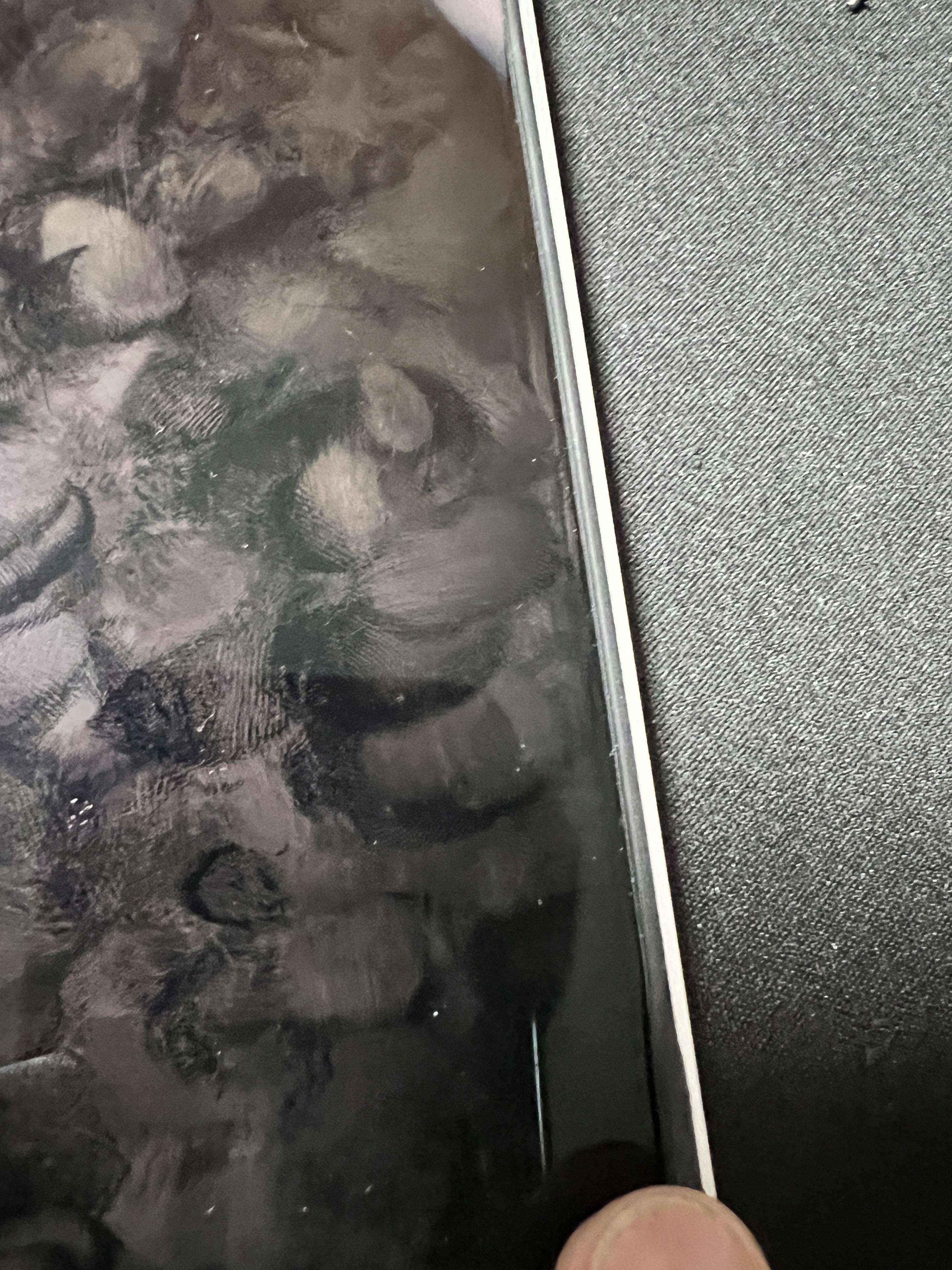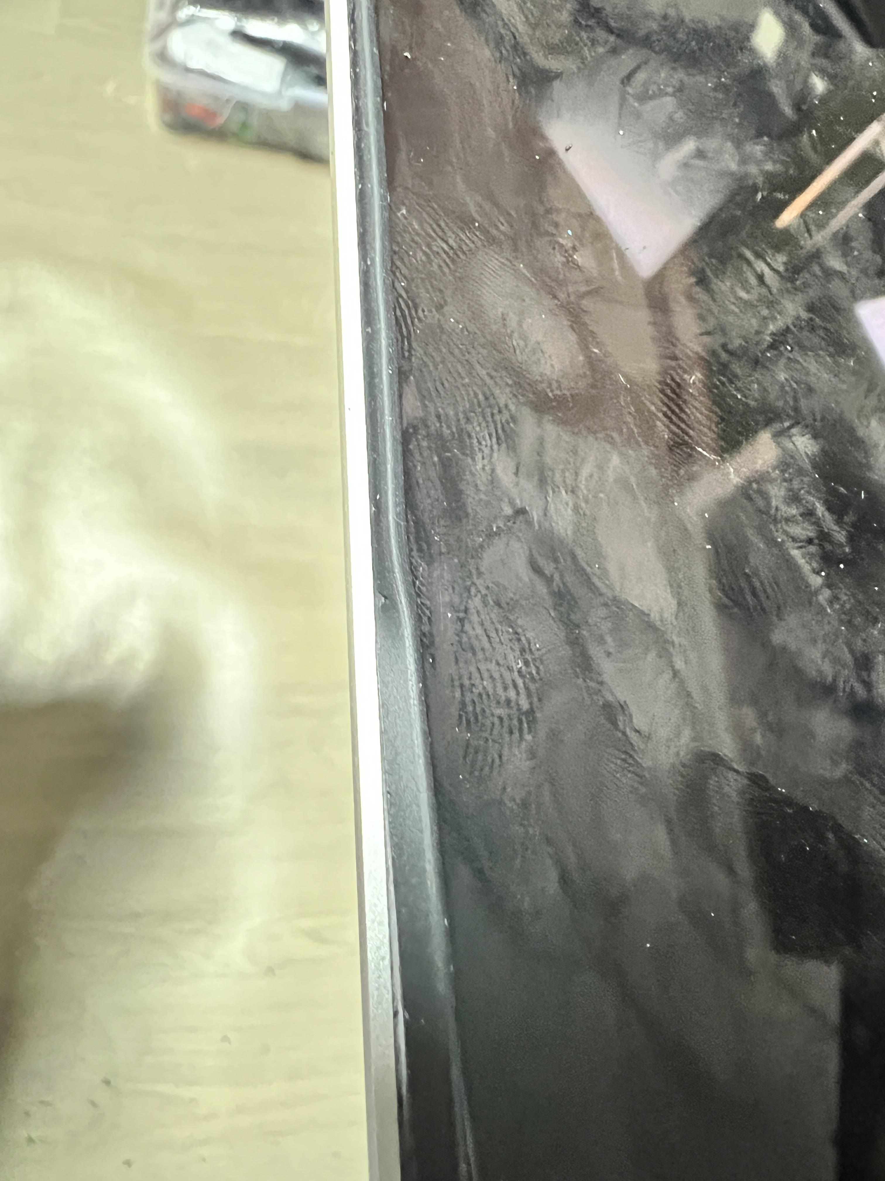 액정 모서리에 조금이라도 상처가 나면 액정 유리에 바로 금이 가거나 파손되므로